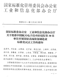 國家標準委及工信部批復(fù)我公司開展國家高端裝備制造業(yè)標準化試點工作
